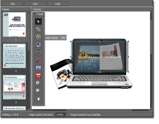 Q:How to add a movie to your 3D page flip book?