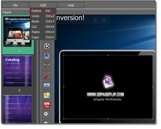 Step4: Then click “Delete” to remove the flash from your 3D page flip book.